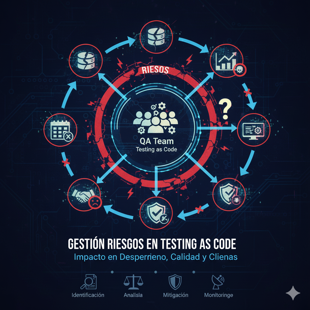 El equipo de QA que entrega servicios de diseño y despliegue de soluciones de aseguramiento de la calidad y las pruebas de software por medio del modelo testing as code se expone a riesgos donde se impacta su desempeño y con ello se afecta la calidad de su proceso y sus productos y la satisfacción del cliente.